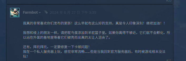 在这么玩家与蛊惑团队的互动式耕种游戏品性的过程中。不单是是玩家反映驱动着述品告捷逆向翻盘。玩家束缚地指出问题,建议建议中,也隐含着玩家对本作对中枢玩法的认同。